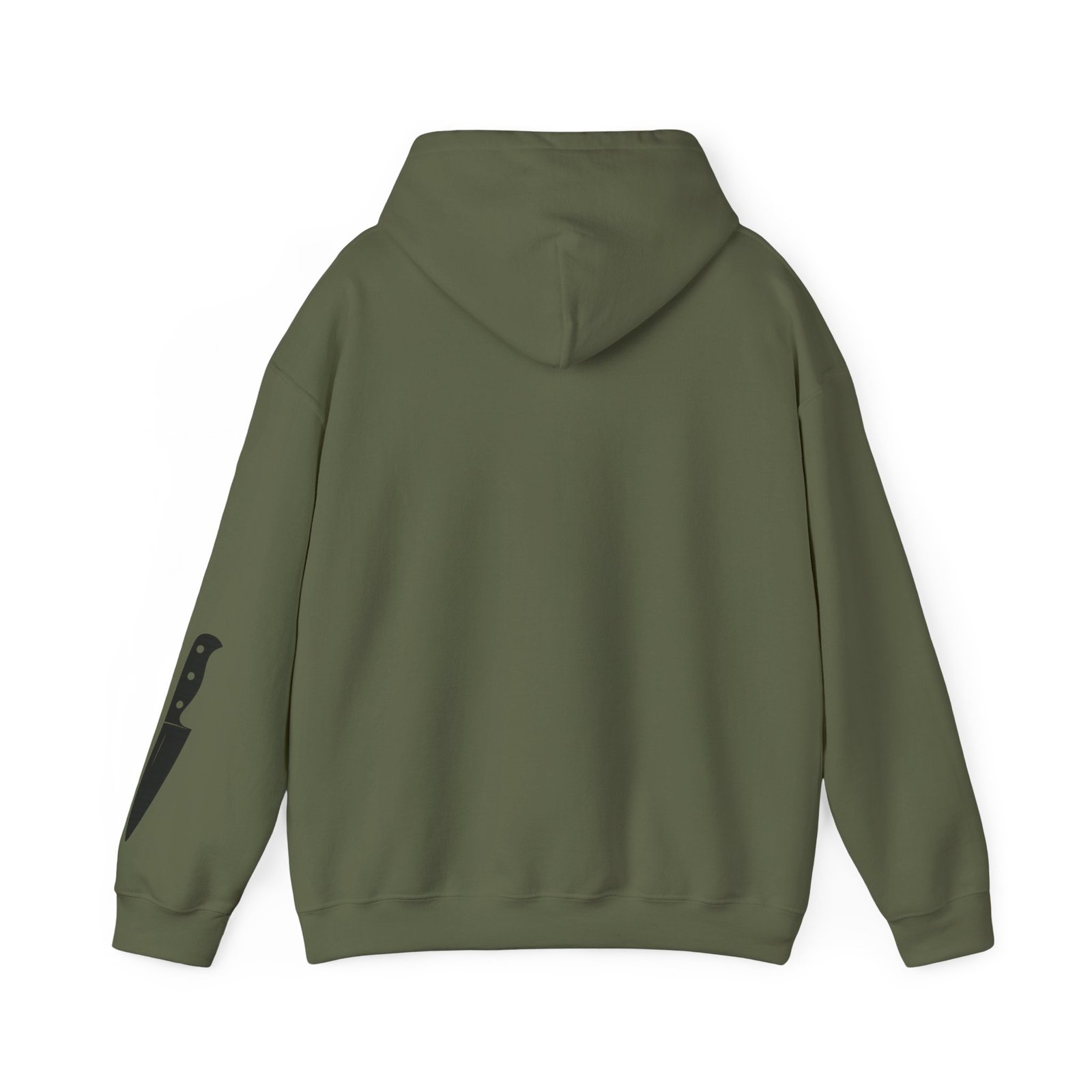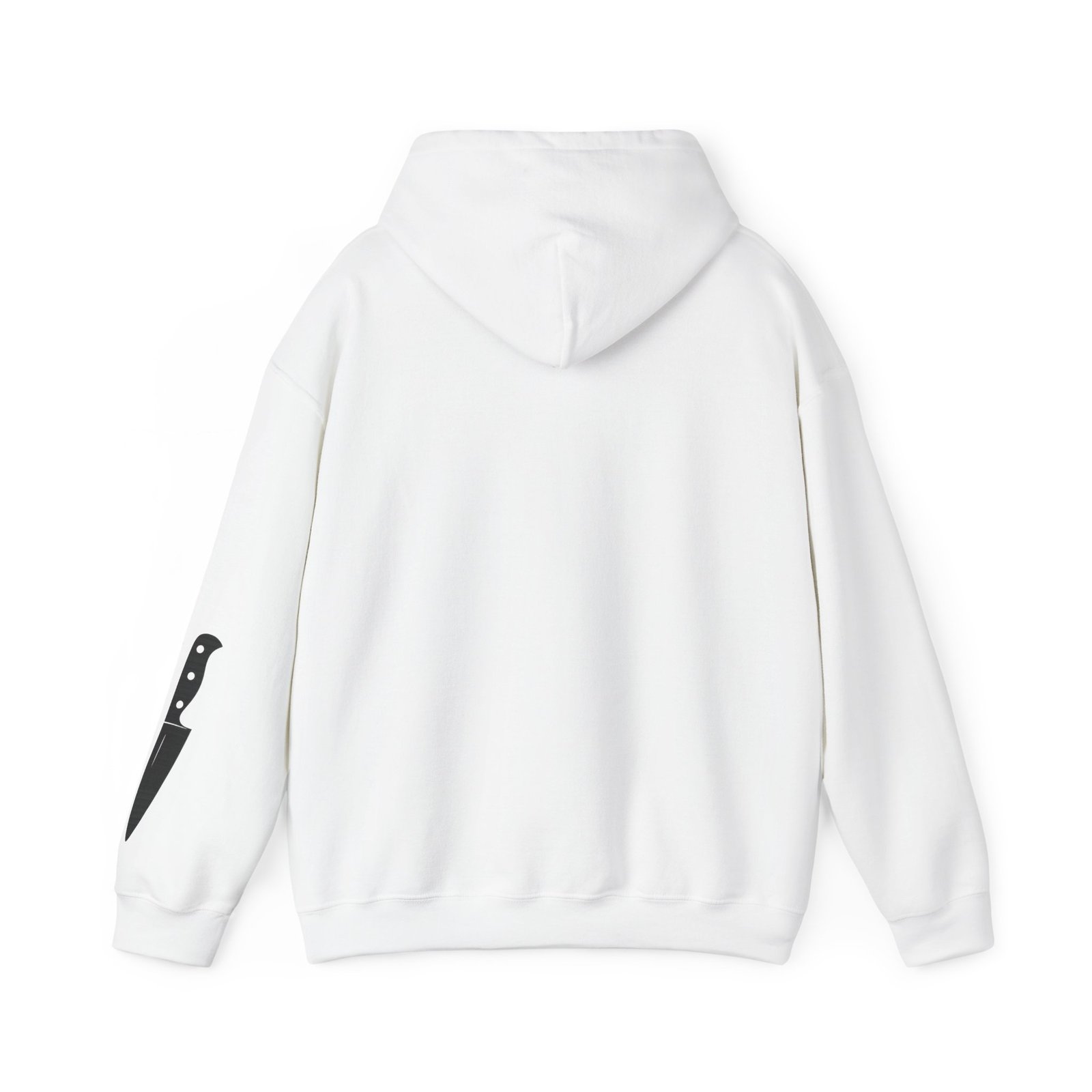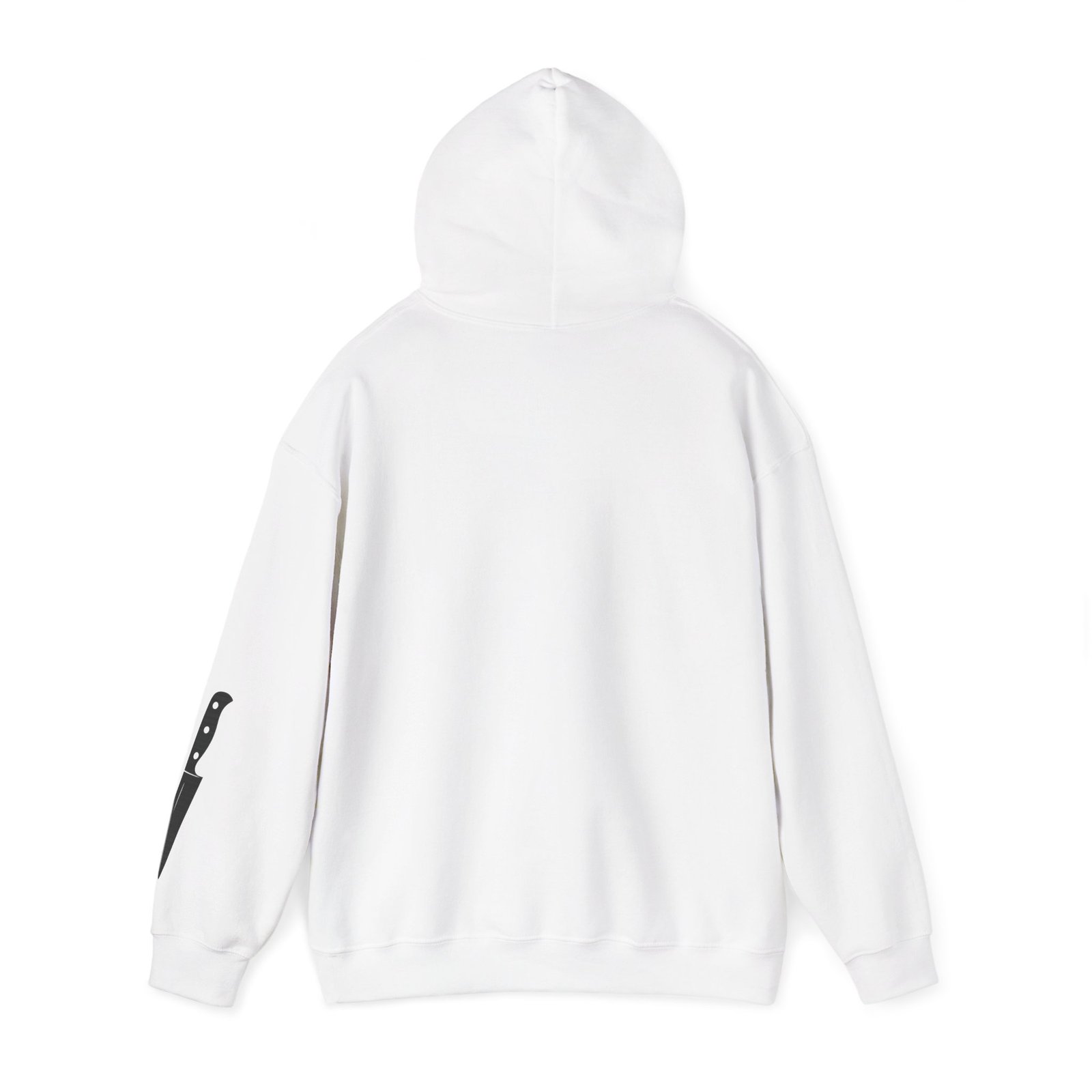 Minimal front logo. Knife on the sleeve. Statement on the back. The kind of piece people don’t notice… until they do.